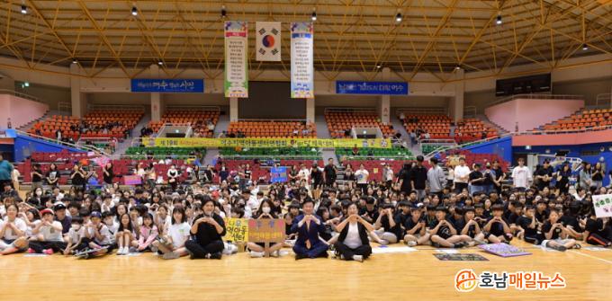¹ÌÆò Áö¿ª¾Æµ¿¼¾Å͸¦ Æ÷ÇÔÇÑ ¿©¼ö½Ã³» 40°³ Áö¿ª¾Æµ¿¼¾ÅÍ 900¿©¸íÀÇ ¾Æµ¿°ú Çкθð, ÀÚ¿øºÀ»çÀÚ µî ÃÑ 1,000¿©¸íÀÌ Âü¼®ÇßÀ¸¸ç, °æ±â ½ÂÆÐ¸¦ ¶°³ª ÈÇÕ°ú ÃàÁ¦ÀÇ ÀåÀ¸·Î ²Ù¸çÁ³´Ù.