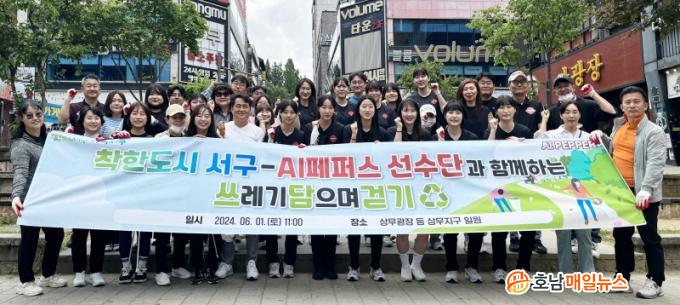 ¡®¾²´ã°È±â¡¯´Â Ç÷αëÀÇ ¿ì¸®¸»·Î ¾²·¹±â¸¦ ´ãÀ¸¸ç °È´Â ½Çõ Ȱµ¿ÀÌ´Ù. ƯÈ÷ °Ç°°ú ȯ°æÀ» µ¿½Ã¿¡ ì±æ ¼ö ÀÖ¾î ½Ã¹Îµé¿¡°Ô Å« Àαâ´Ù. À̳¯ Çà»ç´Â AIÆäÆÛ½º ¼±¼ö´Ü°ú ¼±¸ ¹è±¸µ¿È£È¸¿ø, ¼±¸Ã» Á÷¿ø µî 70¿© ¸íÀÌ Âü¿©ÇßÀ¸¸ç ¡®ÂøÇѵµ½Ã ¼±¸¡¯°¡Ä¡ ½ÇÇöÀÇ ÀÇÁö¸¦ ÇÔ²² ´ÙÁ³´Ù.