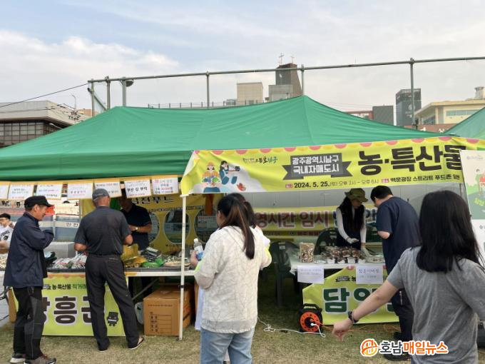 ³ó‧Ư»ê¹° Á÷°Å·¡ ÀåÅÍ´Â ¸ÅÁÖ Åä¿äÀÏ ¿ÀÈÄ 2½ÃºÎÅÍ ¿ÀÈÄ 8½Ã±îÁö ¹é¿î±¤Àå ½ºÆ®¸®Æ® ǪµåÁ¸ ÀÏ¿ø¿¡¼ ÆîÃÄÁø´Ù. °ü³» ÁֹεéÀ» ºñ·ÔÇØ ±¤ÁÖÁö¿ª ¼ÒºñÀÚµéÀº À̰÷ ÀåÅÍ¿¡¼ ÃÖ°íÀÇ Ç°ÁúÀ» ÀÚ¶ûÇÏ´Â ³ó‧Ư»ê¹°À» ±¸¸ÅÇÒ ¼ö ÀÖ´Ù. Á÷°Å·¡ ÀåÅÍ¿¡¼ Ư»ê¹°À» ÆÇ¸ÅÇÏ´Â ¾÷ü´Â °¢ Áö¹æÀÚÄ¡´Üü¿¡¼ ½É»ç¼÷°íÇØ¼ ¼±º°ÇÑ 1~2°³ ¾÷ü¸¸ Âü¿©Çϱ⠶§¹®ÀÌ´Ù.