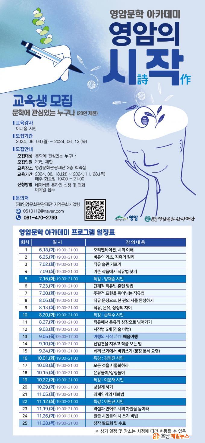 2024³â ¿µ¾Ï ¹®ÇÐ ¾ÆÄ«µ¥¹Ì¡®¿µ¾ÏÀÇ ½ÃÀÛãÌ,í¡¯ÀÇ °úÁ¤Àº 6¿ù 18ÀϺÎÅÍ 11¿ù 28ÀϱîÁö¸ÅÁÖ È¿äÀÏ ¿ÀÈÄ 7½ÃºÎÅÍ 9½Ã±îÁö 2½Ã°£ ÃÑ 25ȸÂ÷·Î ÁøÇàµÇ¸ç ¡ã½Ã âÀÛ ±âÃʰúÁ¤