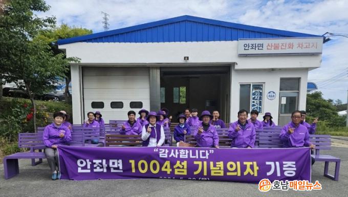 Áö³ 6¿ù 10ÀÏ ¾ÈÁ¸é ÁÖ¹ÎÀÚÄ¡À§¿øÀåÀ» ºñ·ÔÇÑ °¢ »çȸ´ÜüÀå°ú Á÷¿ø µî ÃÑ 23¸íÀÌ 25°³ÀÇ º¸¶ó»ö 1004¼¶ ±â³ä ÀÇÀÚ¸¦ ±âÁõÇÏ¿© ¾ÈÁ¸鿡 »õ·Î¿î º¸¶ùºû ¹Ù¶÷ÀÌ ºÒ°í ÀÖ´Ù.