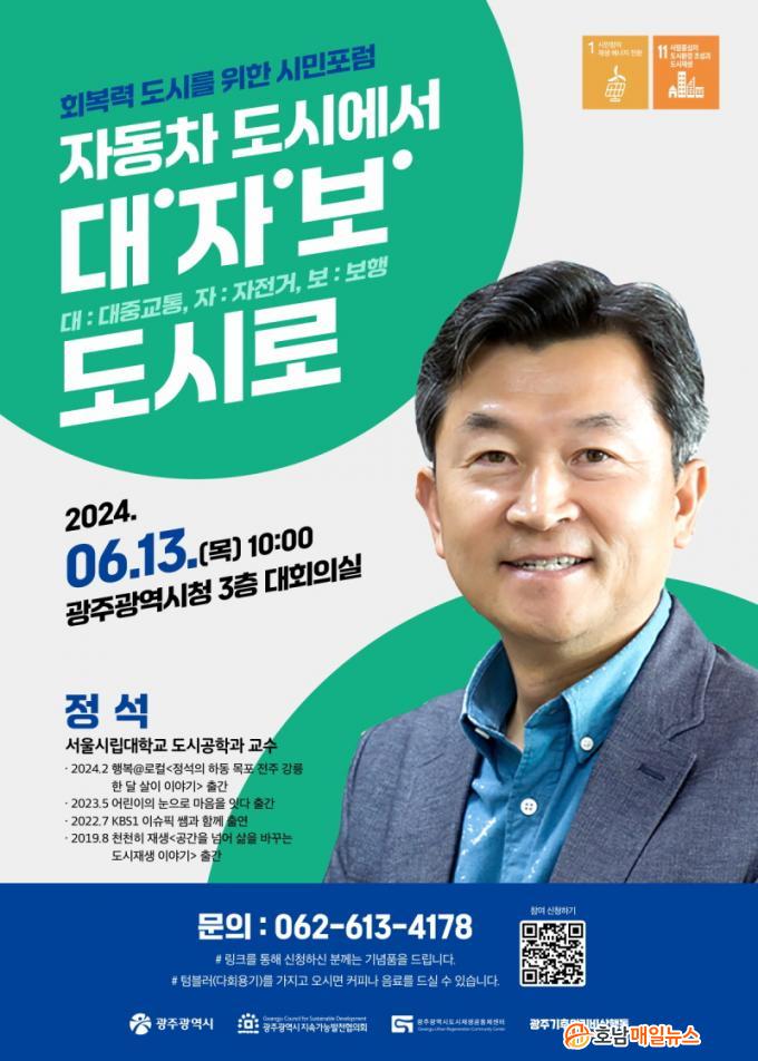±¤ÁÖ±¤¿ª½Ã(½ÃÀå °±âÁ¤)´Â ¿À´Â 13ÀÏ ¿ÀÀü 10½Ã ½Ãû ´ëȸÀǽǿ¡¼ µµ½ÃÀç»ý¡¤µµ½Ã¼³°è ¼®ÇÐ Á¤¼® ±³¼ö(¼¿ï½Ã¸³´ë µµ½Ã°øÇаú)¸¦ ÃʺùÇØ ¡®È¸º¹·Â µµ½Ã¸¦ À§ÇÑ ½Ã¹ÎÆ÷·³ ÀÚµ¿Â÷ µµ½Ã¿¡¼ ´ë¡¤ÀÚ¡¤º¸(´ëÁß±³Å롤ÀÚÀü°Å¡¤º¸Çà) µµ½Ã·Î¡¯¸¦ ÁÖÁ¦·Î Ưº°°¿¬À» °³ÃÖÇÑ´Ù.