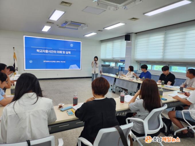 ±¸¼º¿ø Áß ÀÚÀ²½Ã°£ ¿¹½Ã °³¹ßÆÀÀ» Á¶Á÷ÇÏ¿© 5¿ù~6¿ù ÃʱîÁö »ýÅÂÀüȯ±³À° ÁÖÁ¦·Î °ú¸ñ °³¹ßÀ» ÁøÇàÇÏ¿´À¸¸ç, Ÿ½Ãµµ Àû¿ë »ç·Ê µîÀ» ºñ±³ ¿¬±¸Çϱâ À§ÇØ ±¤ÁÖ±¤¿ª½Ã±³À°Ã» ÁߵÀ°°úÁ¤ ´ã´ç ¹ÚÀº¿µ ÀåÇл縦 ÃÊ´ëÇÏ¿© ÇöÀå¿¡¼ ÀÚÀ²½Ã°£ Àû¿ë ¹× ½ÅÀÔ»ý ±³À°°úÁ¤ Æí¼º¿¡ ´ëÇØ ÇÔ²² °í¹ÎÇÏ´Â ½Ã°£À» °¡Á³´Ù.