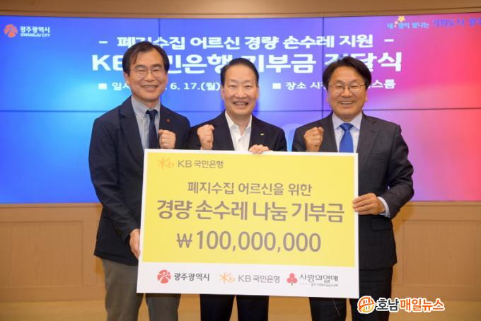 ¼¿µÀÍ KB±¹¹ÎÀºÇà ºÎÇàÀåÀº ¡°À̹ø °æ·® ¼Õ¼ö·¹ ±âºÎ±Ý Àü´Þ·Î ÆóÁö ¼öÁý ¾î¸£½Åµé¿¡°Ô ÈûÀÌ µÇ±æ ¹Ù¶õ´Ù¡±¸ç ¡°KB±¹¹ÎÀºÇàÀº ±¤ÁÖ½ÃÀÇ ¿ªÁ¡ »ç¾÷¿¡ ÈûÀ» º¸Å°í, ±ÝÀ¶µ¿¹ÝÀڷμ ¿ªÇÒÀ» ´ÙÇØ ³ª°¡°Ú´Ù¡±°í ¹àÇû´Ù.