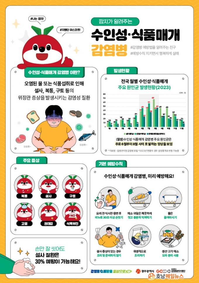 ¼öÀμº¡¤½Äǰ¸Å°³ °¨¿°º´À» ¿¹¹æÇÏ·Á¸é ¡ãÈ帣´Â ¹°¿¡ 30ÃÊ ÀÌ»ó ºñ´©·Î ¼Õ ¾Ä±â ¡ãÀ½½ÄÀº ÃæºÐÈ÷ ÀÍÇô ¸Ô±â ¡ã¹°Àº ²ú¿© ¸¶½Ã±â ¡ãä¼Ò¡¤°úÀÏÀº ±ú²ýÇÑ ¹°¿¡ ¾Ä°Å³ª ²®Áú ¹þ°Ü ¸Ô±â ¡ã¼³»ç Áõ»óÀÌ ÀÖÀ¸¸é À½½Ä Áغñ³ª Á¶¸®ÇÏÁö ¾Ê±â ¡ãÀ§»ýÀûÀ¸·Î Á¶¸®Çϱ⠡ãÄ®‧µµ¸¶´Â Á¶¸® ÈÄ ¼Òµ¶ÇÏ°í »ý¼±¡¤°í±â¡¤Ã¤¼Ò µµ¸¶ ºÐ¸® »ç¿ë µî ¿¹¹æ¼öÄ¢À» ÁöÄÑ¾ß ÇÑ´Ù.