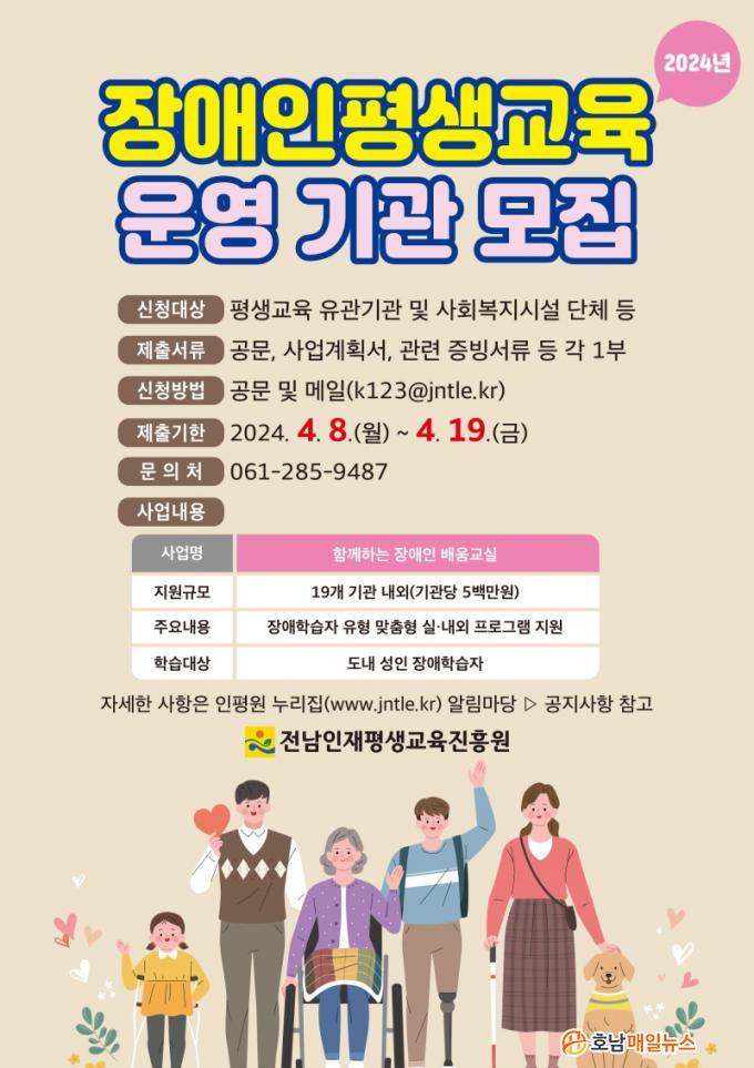 Àå¾ÖÀÎ Æò»ý±³À° ÇÁ·Î±×·¥ Áö¿ø»ç¾÷Àº Áö¿ª ³» ½Ã¼³°ú ¿¬°èÇÏ¿© Àå¾ÖÀε鿡°Ô ¸ÂÃãÆò Æò»ý±³À° ÇÁ·Î±×·¥À» Á¦°øÇϰí, Àå¾ÖÀÎÀÇ »çȸÂü¿© ±âȸ¸¦ È®´ëÇϱâ À§ÇØ ÃßÁøÇÑ´Ù.