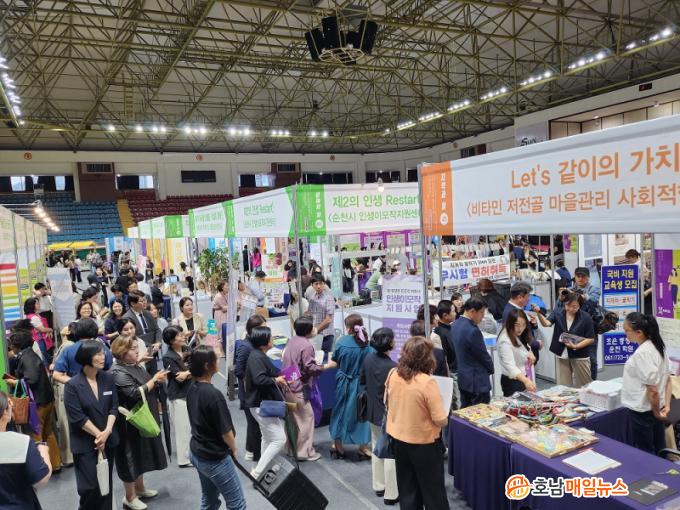 [È£³²¸ÅÀÏ´º½º = ¼Û¿ì¿µ ±âÀÚ] ¼øÃµ½Ã(½ÃÀå ³ë°ü±Ô)´Â Ãë․â¾÷À» Èñ¸ÁÇÏ´Â ¿©¼ºµé¿¡°Ô ¼¼´ëº° °æ·Â ¼³°èÀÇ »õ·Î¿î ÆÐ·¯´ÙÀÓÀ» ¼Ò°³ÇÏ´Â ¡®´Ù½Ã »çȸ·Î¡¯¶ó´Â ÁÖÁ¦·Î ¡¸2024 Àü³² ¿©¼º ÀÏÀÚ¸®¹Ú¶÷ȸ¡¹¸¦ Áö³­ 20ÀÏ ¼øÃµÆÈ¸¶½Ç³»Ã¼À°°ü¿¡¼­ ¼ºÈ²¸®¿¡ °³ÃÖÇß´Ù°í ¹àÇû´Ù.