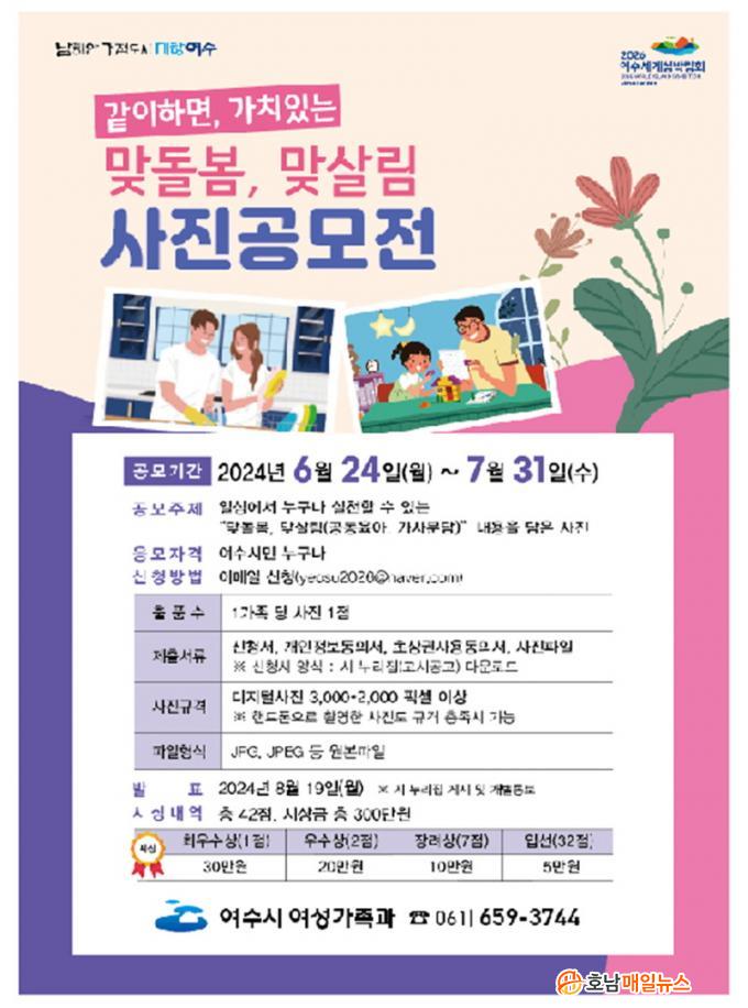 ¿©¼ö ½Ã¹Î ´©±¸³ª ³»´Þ 7¿ù 31ÀϱîÁö ½Ã ´©¸®Áý¿¡¼ ½Åû¼¸¦ ³»·Á ¹Þ¾Æ »çÁøÀÛǰ°ú ÇÔ²² e-¸ÞÀÏ(yeosu2026@naver.com)·Î ÀÀ¸ðÇÒ ¼ö ÀÖ´Ù.