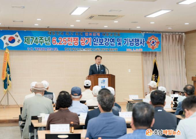 ¿µ±¤±º ÀçÇⱺÀÎȸ(ȸÀå ½É±âµ¿) ÁÖ°üÀ¸·Î ÁøÇàµÈ À̹ø Çà»ç¿¡´Â ±èÁ¤¼· ¿µ±¤±º¼ö ±ÇÇÑ´ëÇà°ú °Çʱ¸ ±ºÀÇȸ ÀÇÀåÀ» ºñ·ÔÇÑ 6.25 ÂüÀüÀ¯°øÀÚ ¹× º¸ÈÆ °¡Á· µî 150¿© ¸íÀÌ Âü¼®ÇÏ¿´À¸¸ç, ¡®ºÏÇÙ¹®Á¦¿Í Çѹݵµ ÆòÈ¡¯¶ó´Â ÁÖÁ¦ÀÇ ¾Èº¸ °¿¬¿¡ À̾î À¯°øÀÚ Ç¥Ã¢, ´ëȸ»ç, ±â³ä»ç, °áÀǹ® ³¶µ¶, 6.25³ë·¡ Á¦Ã¢ ¼øÀ¸·Î ÁøÇàµÆ´Ù.