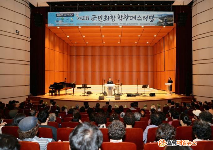 À̳¯ Çà»ç¿¡´Â ÇùÀÇȸÀåÀ» ¸Ã°í ÀÖ´Â °íÈﱺ¼ö¿Í °íÈﱺÀÇȸ ÀÇÀåÀ» ºñ·ÔÇÑ °¢ ±ºÀÇȸ ÀÇÀå, °íÈﱺÀÇȸ ÀÇ¿ø, 4°³±º Áö¿ª ÁֹΠµî 600¿© ¸íÀÌ °´¼®À» °¡µæ ä¿ö ¸ðµÎ°¡ ÇÔ²²ÇÏ´Â ÈÇÕÀÇ ´ëÃàÁ¦°¡ µÆ´Ù.°¢ Áö¿ªº° 30~40¸íÀ¸·Î ±¸¼ºµÈ 4°³±º ÇÕâ´ÜÀº Ȱ¹ßÇÑ À½¾Ç Ȱµ¿À» ÆîÄ¡°í ÀÖÀ¸¸ç, À̹ø °ø¿¬¿¡¼ ±×µ¿¾È °¥°í´ÛÀº ½Ç·ÂÀ» ¹«´ë¿¡¼ ¸¶À½²¯ ÆîÃÆ´Ù.