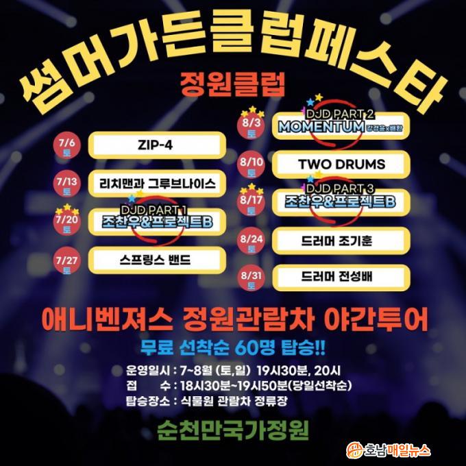 ¾Æ¸§´Ù¿î Á¤¿øÀÇ ¾ß°æÀ» ½Ã¿øÇÑ ¹Ù¶÷°ú ÇÔ²² °¨»óÇÒ ¼ö ÀÖ´Â ¡®¾Ö´Ïº¥Á®½º ¾ß°£ Á¤¿ø°ü¶÷Â÷¡¯µµ ¿î¿µµÈ´Ù. ¸ÅÁÖ Åä¿äÀϰú ÀÏ¿äÀÏ Àú³á 7½Ã 30ºÐºÎÅÍ 8½Ã 30ºÐ±îÁö 2ȸ ¿î¿µµÇ¸ç µ¿¿ø Àü¿ªÀ» Åõ¾îÇÏ´Â ÄÚ½º·Î ±¸¼ºµÇ¾î ÀÖ´Ù.