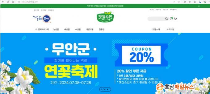ÇÒÀÎÇà»ç´Â 7¿ù 8ÀϺÎÅÍ 28ÀϱîÁö ¸À¶ã¹«¾È¸ô¿¡ ÀÔÁ¡ÇÑ Àü »óǰ¿¡ ´ëÇØ 20% ÇÒÀÎ ÄíÆùÀ» Áö±ÞÇÑ´Ù. ÄíÆùÀº 1ÀÎ 3¸Å°¡ Áö±ÞµÇ¸ç ÄíÆù ´ç ÃÖ´ë 3¸¸ ¿ø±îÁö ÇÒÀιÞÀ» ¼ö ÀÖ¾î ¿ì¼öÇÑ ³ó¼öÃà»ê¹°°ú °¡°ø½ÄǰÀ» Àú·ÅÇÑ °¡°Ý¿¡ ±¸¸ÅÇÒ ¼ö ÀÖ´Ù.