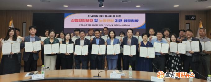 Àü³²³ëµ¿±ÇÀͼ¾ÅÍ ÁÖ°üÀ¸·Î Çù¾à½Ä¿¡´Â ¿À¼ö¹Ì Àü³²µµ Áß¼Òº¥Ã³±â¾÷°úÀå, ÁÖÁ¾¼· Àü³²µµÀÇȸ ÀÇ¿ø, ¹®±æÁÖ Àü³²³ëµ¿±ÇÀͼ¾ÅÍÀå, ÀÚȰ¼¾ÅÍ ´ëÇ¥ÀÚ¿Í Á¾»çÀÚ µî 30¿© ¸íÀÌ Âü¼®Çß´Ù.