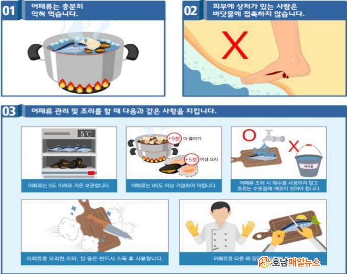 ºñºê¸®¿ÀÆÐÇ÷Áõ ¿¹¹æÀ» À§Çؼ´Â ÇǺο¡ »óó°¡ ÀÖ´Â »ç¶÷Àº ¹Ù´å¹°¿¡ Á¢ÃËÇÏÁö ¸»¾Æ¾ß Çϸç, ¾îÆÐ·ù´Â ÃæºÐÈ÷ ÀÍÇô¼ ¸Ô¾î¾ß ÇÑ´Ù. ¶ÇÇÑ ¾îÆÐ·ù º¸°ü ½Ã 5¡É ÀÌÇÏ·Î À¯ÁöÇϰí, ¾îÆÐ·ù ¿ä¸® ½Ã »ç¿ëÇÑ µµ¸¶¿Í Ä® µîÀº ¹Ýµå½Ã ¼Òµ¶ÇÏ´Â µî ¿¹¹æ¼öÄ¢À» ÁöÄÑ¾ß ÇÑ´Ù.