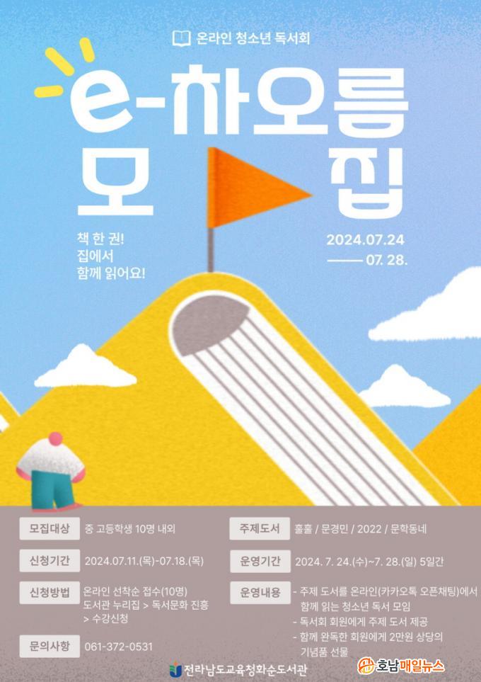 Æò¼Ò Á¤±Ô Çо÷°ú »ç±³À° µîÀ¸·Î µµ¼°ü¿¡¼ ÁøÇàÇÏ´Â µ¶¼È¸¿¡ Âü¿©Çϱ⠽±Áö ¾ÊÀº ÇлýµéÀ» À§ÇØ Ã»¼Ò³â µ¶¼È¸ e-Â÷¿À¸§ 1±â´Â 7¿ù 24ÀϺÎÅÍ 7¿ù 28ÀϱîÁö 5Àϰ£ ¿Â¶óÀÎ(īī¿ÀÅå ¿ÀÇÂäÆÃ)À¸·Î ÁøÇàÇÑ´Ù.