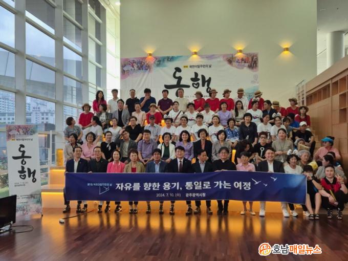 À̳¯ Çà»ç´Â °Çö±¸ ¹ÎÁÖÆòÈÅëÀÏÀÚ¹®È¸ÀÇ ±¤ÁÖÁö¿ª ºÎÀÇÀå, ±¤ÁÖ±¤¿ª½Ã ºÏÇÑÀÌÅ»ÁÖ¹ÎÁö¿ø Áö¿ªÇùÀÇȸ ¼Ò¼Ó Ȳ¼ºÈ£ ±¤ÁÖÇϳª¼¾ÅÍÀå, ÀÌÀºÈñ ±¤ÁÖÇϳª¹®È±³·ù¼¾ÅÍÀå, ºÎ´öÀÓ (»ç)¼ÖÀÙ½°ÅÍ ÀÌ»çÀå µî ºÏÇÑÀÌÅ»Áֹΰú ½Ã¹Î 200¿©¸íÀÌ Âü¼®Çß´Ù.