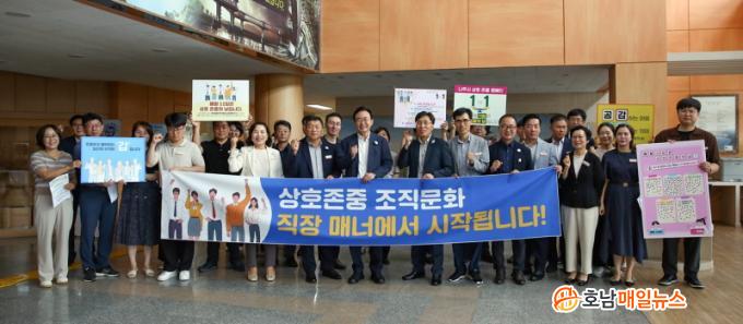 ³ªÁÖ½Ã(½ÃÀå À±º´ÅÂ)´Â 11ÀÏ ¡®»óÈ£ Á¸ÁßÀÇ ³¯¡¯À» ¸Â¾Æ À̳¯ ¿ÀÀü ½Ãû»ç ·Îºñ¿¡¼ Á÷¿ø °£ ¼ÒÅëÀÇ ½Ã°£À» °¡Á³´Ù.»óÈ£ Á¸ÁßÀÇ ³¯Àº Á÷Àå ³» °©Áú ±ÙÀý°ú û·ÅÇÑ Á¶Á÷¹®È È®»êÀ» À§ÇØ ¡®¼·Î°¡ ¼·Î¸¦ Á¸ÁßÇÏ°í ¹è·ÁÇÑ´Ù(1=1)¡¯´Â Àǹ̷Π¸Å´Þ 11ÀÏ·Î ÁöÁ¤Çß´Ù.