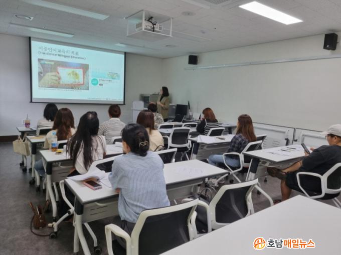 Àü³²±³À°Ã»Àº Áö³ 7¿ù 12ÀÏ(±Ý)ºÎÅÍ 9¿ù 23ÀÏ(¿ù)±îÁö ¸ñÆ÷, ³ªÁÖ, ¿Ïµµ, ÇØ³² 4°³ Áö¿ª °¡Á·¼¾ÅÍ¿Í ¿¬°èÇØ 60¸íÀÇ ÀÌÁÖ¹è°æ°¡Á¤ Çкθ𸦠´ë»óÀ¸·Î ÀÌÁß¾ð¾î°»ç Àü¹®°¡ °úÁ¤ ¿¬¼ö¸¦ ¿î¿µÇÑ´Ù.