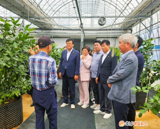 À̳¯, »ï¼¸é »ï°è¸® ¼ÒÀç ·¹¸ó Àç¹è³ó°¡¸¦ ãÀº Àü³²µµÀÇȸ ³ó¼ö»êÀ§¿øÈ¸ À§¿øµéÀº ÇöÁö ³ó¾÷Àεé·ÎºÎÅÍ ¾Ö·Î ¹× °ÇÀÇ»çÇ×À» µè°í, ¾Æ¿´ëÀÛ¹° Àç¹è ÇöÀå¿¡ ÇÊ¿äÇÑ ÇàÁ¤Àû Áö¿ø¿¡ ´ëÇØ ÀǰßÀ» ³ª´³´Ù.