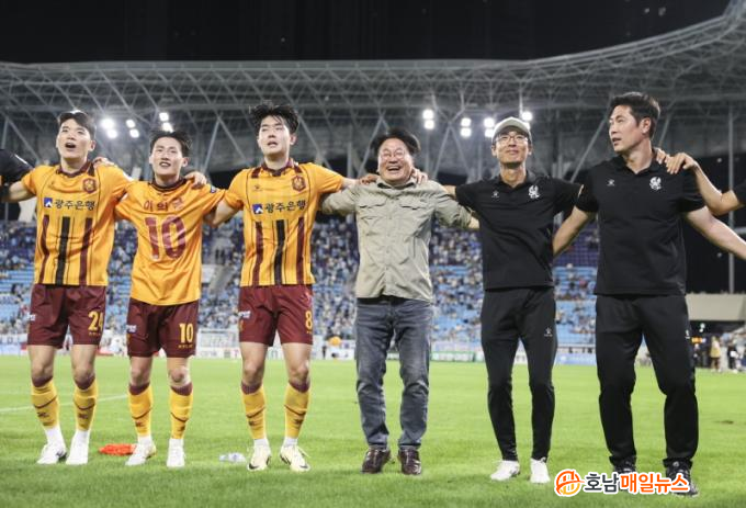 ƯÈ÷ ¹Î¼± 8±â¿¡´Â Ä£¼±¡¤¿ìÈ£ ±³·ù¸¦ ³Ñ¾î Ưº°¹ý Åë°ú¿Í °°Àº ½ÇÁúÀûÀÎ ¼º°ú¸¦ °ÅµÎ°í, Áö¿ª±ÕÇü¹ßÀüÀ» À§ÇÑ ³²ºÎ°Å´ë°æÁ¦±Ç Á¶¼ºÀ» ÇÔ²² ÃßÁøÇØ ¡®»ê¾÷µ¿¸Í¡¯À¸·Î±îÁö È®ÀåÇß´Ù. À̳¯ ° ½ÃÀåÀº ±¤ÁÖFC ¿øÁ¤ÆÒµéÀ» ÀÀ¿øÇϱâ À§ÇØ ¿øÁ¤¼®À» Á÷Á¢ ã¾Æ ÀλçÇϰí, ¡°±¤ÁÖFC¸¦ º¯ÇÔ¾øÀÌ »ç¶ûÇØ ´Þ¶ó¡±°í ÀüÇß´Ù.