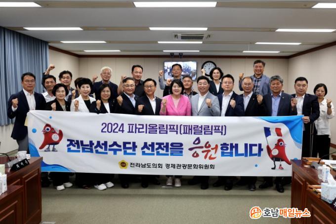 ÇÑÆí, ±è¿µ·Ï Àü³²µµÁö»çµµ Áö³ 17ÀÏ 2024 ÆÄ¸®¿Ã¸²ÇÈ¿¡ ÃâÀüÇÏ´Â Àü³² ¼Ò¼Ó¡¤Ãâ½Å ¼±¼ö 9¸í¿¡°Ô °Ý·Á ¼Çѹ®À» ¹ß¼ÛÇÏ¸ç ¼±ÀüÀ» ´çºÎÇÑ ¹Ù ÀÖ´Ù.
