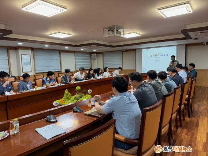 À̳¯ °£´ãȸ¿¡¼ Àü³²³ì»öȯ°æÁö¿ø¼¾ÅÍ´Â ±âº»°èȹ¼ö¸³ ÁÖ¿ä ³»¿ëÀ» ¼³¸íÇϰí, ½ÅÀç»ý¿¡³ÊÁö, °Ç¹°, ¼ö¼Û, ³óÃà¼ö»ê, ÀÚ¿ø¼øÈ¯, Èí¼ö¿ø 6°³ ºÐ¾ß °¨Ãà¸ñÇ¥¿Í ÃßÁøÀü·« µîÀÌ ³íÀǵƴÙ.