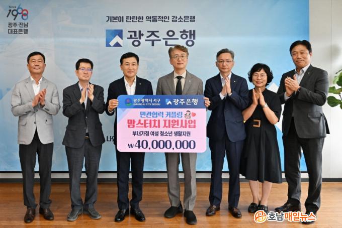 ±¤ÁÖ±¤¿ª½Ã ¼±¸(±¸Ã»Àå ±èÀ̰)´Â 23ÀÏ ±¤ÁÖÀºÇà(ÀºÇàÀå °íº´ÀÏ)À¸·ÎºÎÅÍ ¿©¼º û¼Ò³âµéÀ» À§ÇÑ ¸¾½ºÅÍÄ¡ »ç¾÷ºñ 4000¸¸¿øÀ» ±âŹ¹Þ¾Ò´Ù. ¼±¸´Â ÀÌ ÈÄ¿ø±ÝÀ» ÀÌÈ¥, »çº° µî °¡Á¤È¯°æÀ¸·Î ¾ö¸¶°¡ ºÎÀçÁßÀÎ ¿©¼º û¼Ò³âÀ» À§ÇØ »ç¿ëÇÒ ¿¹Á¤ÀÌ´Ù. ¼±¸Áö¿ª»çȸº¸ÀåÇùÀÇü ¾Æµ¿‧û¼Ò³â ºÐ°ú ¿©¼ºÀ§¿øµéÀÌ ÂøÇѸ¾(MOM) ¸àÅä·Î ³ª¼ ¿©¼º û¼Ò³âµéÀÇ ¼Ó¿Ê°ú ÈÀåǰ ±¸ÀÔ µîÀ» µ½°í, °¡Á· ¿Ü½Ä, ¿µÈ°ü¶÷, ¹®ÈüÇè µî ½É¸®Àû ¾ÈÁ¤µµ Áö¿øÇÒ °èȹÀÌ´Ù.