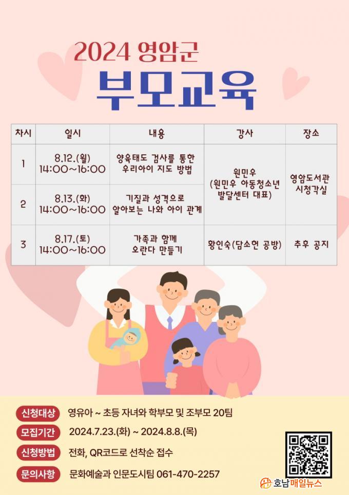 ±³À° ½ÅûÀº 8/8ÀϱîÁö ÀüÈ¿Í QRÄÚµå·Î ½ÅûÇÒ ¼ö ÀÖ°í, ÀÚ¼¼ÇÑ ¾È³»´Â ¿µ¾Ï±º Àι®µµ½ÃÆÀ(061-470-2257)¿¡¼ ÇÑ´Ù.