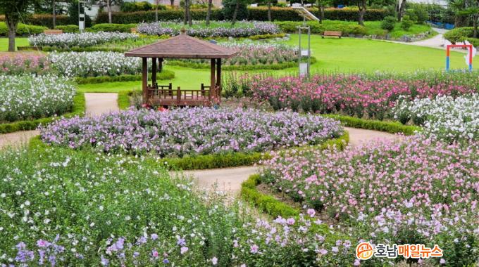 ºÎÁö ¸éÀûÀÌ 9500§³¿¡ À̸£·¯ ±¹³» ¹«±ÃȰø¿ø °¡¿îµ¥ °¡Àå Å« ±Ô¸ð¸¦ ÀÚ¶ûÇÑ´Ù. ³ÐÀº ºÎÁö¸¸Å, ¹«±ÃÈ Á¾·ùµµ ´Ù¾çÇÏ´Ù. 36°³ ǰÁ¾ 1¸¸¿© ±×·çÀÇ ¹«±ÃÈ ¹¦¸ñ°ú ¹è´Þ°è 5Á¾ 980ÁÖ, È«´Ü½É°è 18Á¾ 5118ÁÖ, ¹é´Ü½É°è 10Á¾ 2650ÁÖ µîÀÌ ½ÄÀçµÇ¾î ÇÑ ÀÚ¸®¿¡¼ ÇöÁ¸ÇÏ´Â °ÅÀÇ ¸ðµç Á¾·ùÀÇ ¹«±Ãȸ¦ °¨»óÇÒ ¼ö ÀÖ´Ù. 2022³â »ê¸²Ã» ¡®Á¦9ȸ ³ª¶ó²É ¹«±ÃÈ ¸í¼Ò °ø¸ð¡¯¿¡¼ ÃÖ¿ì¼ö»óÀ» ¼ö»óÇß´Ù.