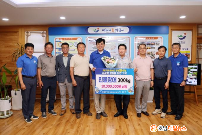 À̹ø ÀåÈï ¹°ÃàÁ¦ ¹°°í±â Àâ±â üÇè¿¡¼´Â ¸ÅÀÏ 130kg(400¸¶¸®) ÀÌ»ó ¹Î¹°Àå¾î¿Í ¸Þ±â µî ´ë¿Õ Àå¾î(700g) 5¸¶¸®¸¦ ¹æ·ùÇÑ´Ù. ´ë¿ÕÀå¾î¸¦ Àâ´Â üÇè°´µé¿¡°Ô Á¶¹Ì±è ¼±¹°¼¼Æ® 1¹Ú½º(6¸¸¿ø »ó´ç)¿Í ¼ÒÁ¤ÀÇ »óǰÀ» ÁõÁ¤Çϴ Ưº° À̺¥Æ®¸¦ ½Ç½ÃÇÑ´Ù.