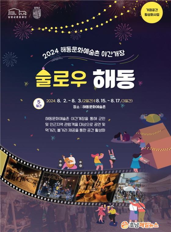 ¡®¼ú·Î¿ì ÇØµ¿¡¯Àº ¿øµµ½É °ø°£ÀÇ È°¼ºÈ¸¦ ¸ñÀûÀ¸·Î ¾ß°£¿¡µµ ¹®È¿¹¼úÀ» Áñ±æ ¼ö ÀÖµµ·Ï ±âȹµÆÀ¸¸ç, °ú°Å ÁÖÁ¶ÀåÀ̾ú´ø ÇØµ¿¹®È¿¹¼úÃÌÀÇ ÄܼÁÆ®¿¡ ¸Â°Ô ¼úÀ» ÁÖÁ¦·Î Çà»ç¸¦ ÁøÇàÇÑ´Ù.