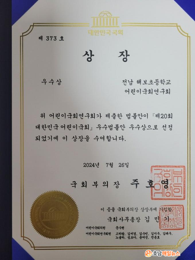 ÀÌÀç¿î ±³ÀåÀº ¡°ÇлýµéÀÌ Á÷Á¢ ¿¬±¸ÇÏ°í °í¹ÎÇÏ¿© ¸¸µç ¹ý·ü¾ÈÀÌ 2³â ¿¬¼Ó ±¹È¸ºÎÀÇÀå»óÀ» ¼ö»óÇÏ°Ô µÇ¾î ´õ¿í ÀÚ¶û½º·´´Ù¡±¶ó°í ¸»Çß´Ù.
