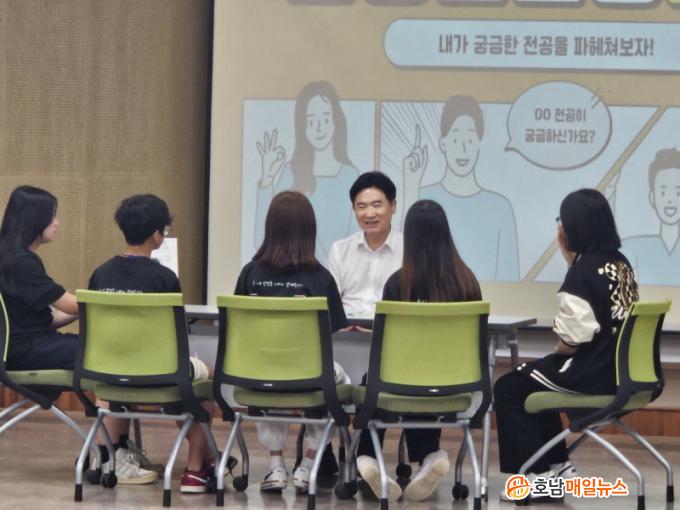 ÀÔ¼Ò ¼Â° ³¯ÀÎ 25ÀÏ ±è´ëÁß Àü³²±³À°°¨ÀÌ ¡®²Þ ½ÇÇö ÀλýÇб³ 3±â¡¯Çлý 40¿© ¸í°ú ÇÔ²² Áø·Î ¸àÅ丵À» ¿¾î ¿¶í È£ÀÀÀ» ¹Þ¾Ò´Ù. À̹ø ¸àÅ丵Àº¡®³» ÀλýÀº ³»°¡ ¼³°èÇÑ´Ù¡¯´Â ²Þ ½ÇÇö Àλý Çб³ ½½·Î°Ç¿¡ ¸ÂÃç ÁøÇàµÆÀ¸¸ç, ±è´ëÁß ±³À°°¨°ú °í±â¹Î(¿¬¼¼´ë »ý¸í°úÇбâ¼úÇкΠ2³â) ¸àÅä µî ´Ù¾çÇÑ Àü°ø ¸àÅä 9¸íÀÌ Áø·Î ºÎ½º¸¦ ¿î¿µÇϸç Èñ¸ÁÇÏ´Â ¼Ò±×·ì Çлýµé°ú ²Þ¿¡ ´ëÇÑ À̾߱⸦ ³ª´©¾ú´Ù.
