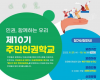 11ÀÏ ºÏ±¸¿¡ µû¸£¸é ¿À´Â 19ÀϺÎÅÍ 27ÀϱîÁöÀÇ ±â°£ Áß ¸ñ¿äÀϰú ±Ý¿äÀÏ ¿ÀÈÄ 4½ÃºÎÅÍ 6½Ã±îÁö Áö¿ª ÁÖ¹ÎÀ» ´ë»óÀ¸·Î ºÏ±¸Æò»ýÇнÀ°ü 2Ãþ °´ç¿¡¼ ¡®Á¦10±â ÁÖ¹ÎÀαÇÇб³¡¯°¡ ¿î¿µµÈ´Ù.