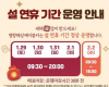¼³³¯¿¬ÈÞ°¡ ½ÃÀ۵Ǵ 1¿ù 29ÀϺÎÅÍ ¼³³¯ ´çÀÏÀÎ 2¿ù 1ÀϱîÁö´Â ¿ÀÀü 9½Ã 30ºÐºÎÅÍ ¿ÀÈÄ 8½Ã±îÁö 2½Ã°£ ¿¬Àå ¿î¿µÀ» ÁøÇàÇϸç, ¼³³¯¿¬ÈÞ ¸¶Áö¸· ³¯ÀÎ 2ÀÏ¿¡´Â ¿ÀÈÄ 6½Ã±îÁö Á¤»ó ¿îÇàÇÏ¡¦ |