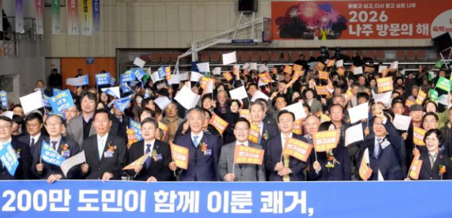 ¡®´ëÇѹα¹ ¿¡³ÊÁö ¼öµµ Àü³² ³ªÁÖ, ÀΰøÅ¾çÀ» ǰ´Ù!¡¯¶ó´Â ½½·Î°Ç ¾Æ·¡ ¿¸° À̳¯ Çà»ç¿¡´Â °À§¿ø Àü³²µµ °æÁ¦ºÎÁö»ç, À±º´Å ³ªÁÖ½ÃÀå, ½ÅÁ¤ÈÆ ±¹È¸ÀÇ¿ø, Áö¿ª ´ëÇС¤»ê¾÷°è¡¤¿¬±¸°è Àλç¿Í À¯Ä¡À§¿øÈ¸ À§¿ø, µµ¹Î µî 900¿© ¸íÀÌ Âü¼®Çß´Ù. À̵éÀº ÀΰøÅÂ¾ç ¿¬±¸½Ã¼³ À¯Ä¡ °¨°ÝÀ» ÇÔ²² ³ª´³´Ù. °¡¼ö ÃàÇϰø¿¬ µîµµ À̾îÁ® Çà»ç ºÐÀ§±â¸¦ ´õ¿í ¶ß°Ì°Ô ´Þ±É´Ù.