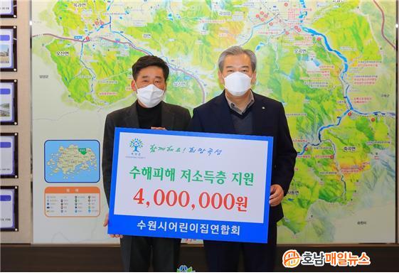 °î¼º±º °ü°èÀÚ´Â ¡°Äڷγª19 ¿©ÆÄ·Î ¾î·Á¿òÀ» °Þ´Â °¡¿îµ¥µµ ¼ö¿ø½Ã¾î¸°ÀÌÁý¿¬ÇÕȸ¿¡¼ ÇÔ²² ÇÏ´Â ¾Æ¸§´Ù¿î ¸¶À½¿¡ °¨»ç¸¦ µå¸®¸ç, ±âʹÞÀº ¼º±ÝÀº ¾î·Á¿òÀ» °Þ°í ÀÖ´Â ¼öÇØ ÇÇÇØ Àú¼ÒµæÃþ¿¡°Ô ¿ÂÁ¤ÀÇ ¼Õ±æÀÌ ´êÀ» ¼ö ÀÖµµ·Ï Àß Àü´ÞÇϰڴÙ"°í ¸»Çß´Ù.
