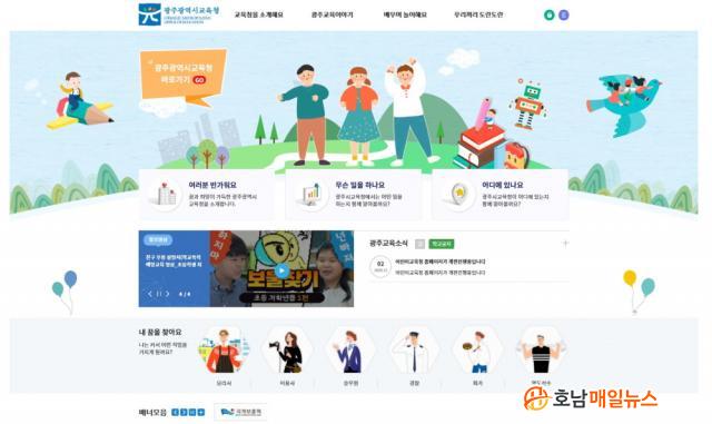 ¡®¾î¸°ÀÌ È¨ÆäÀÌÁö¡¯´Â ±¤Áֽñ³À°Ã» ȨÆäÀÌÁö¿¡¼ ¹Ù·Î°¡±â¸¦ ÅëÇØ Á¢¼Ó °¡´ÉÇϰí, ¡ã±³À°Ã»À» ¼Ò°³ÇØ¿ä ¡ã±¤ÁÖ±³À°À̾߱⠡ã¹è¿ì¸ç ³îÀÌÇØ¿ä ¡ã¿ì¸®³¢¸® µµ¶õµµ¶õ µî 4°³ ¸Þ´º·Î ±¸¼ºµÆ´Ù.