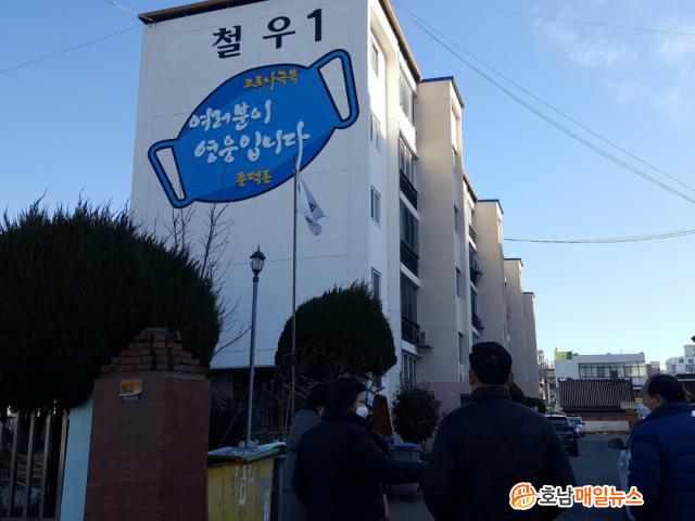 ¸¶½ºÅ© º®È´Â ÁÖ¹ÎºÒÆíÇØ¼Ò»ç¾÷ÀÇ ÀÏȯÀ¸·Î, dz´öµ¿ ö¿ì ¾ÆÆÄÆ® º®¸éÀ» Ȱ¿ëÇØ Äڷγª19°¡ ÇϷ绡¸® Á¾½ÄµÇ±â¸¦ ¹Ù¶ó´Â ¸¶À½°ú ÁöÄ¡°í Èûµç ¿©°Ç ¼Ó¿¡¼µµ Äڷγª19 ±Øº¹À» À§ÇØ ¾î·Á¿òÀ» ¹¬¹¬È÷ Âü°í ÇÔ²² ÇØÁØ ½Ã¹ÎµéÀ» °Ý·ÁÇϰíÀÚ ¡®¿©·¯ºÐÀÌ ¿µ¿õÀÔ´Ï´Ù¡¯¶ó´Â ÀÀ¿ø ¸Þ½ÃÁö¸¦ ´ã¾Æ ±×·ÁÁ³´Ù.