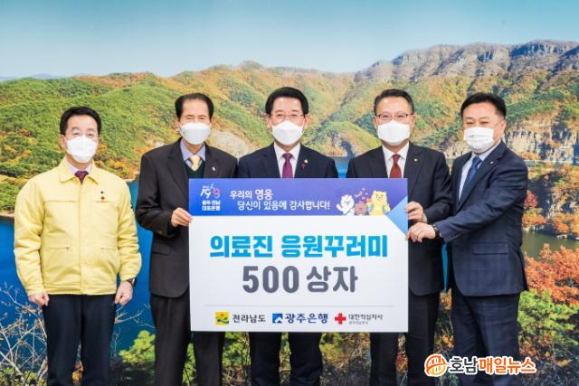 ±¤ÁÖ¡¤Àü³²Áö¿ªÀÇ ²ªÀÌÁö ¾Ê´Â Äڷγª È®»ê¼¼¿¡µµ ¡®Äڷγª19¡¯ Ä¡·á¿Í È®»ê ¹æÁö¸¦ À§ÇØ ÃÖÀü¼±¿¡¼ Èû¾²°í ÀÖ´Â ÀÇ·áÁø¿¡°Ô °¨»ç¿Í ÀÀ¿øÀÇ ¸Þ½ÃÁö¸¦ Àü´ÞÇϰíÀÚ ¼ÛÁ¾¿í ±¤ÁÖÀºÇàÀå°ú ÀÓÁ÷¿ø 40¿©¸íÀº ¡®ÀÀ¿ø²Ù·¯¹Ì¡¯ 500»óÀÚ¸¦ Á÷Á¢ Á¦ÀÛÇÏ´Â ºÀ»çȰµ¿À» ÀÚüÀûÀ¸·Î ÁøÇàÇß´Ù.