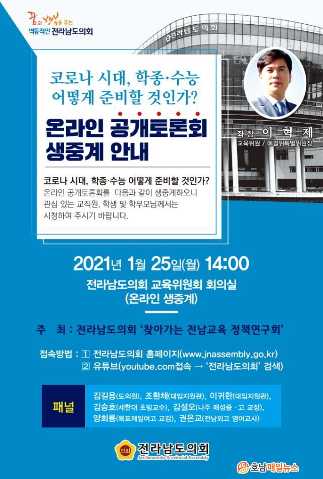 °ø°³Åä·Ðȸ´Â ÀÌÇõÁ¦ µµÀÇ¿øÀÇ ¡®Äڷγª ½Ã´ë, ÇлýºÎÁ¾ÇÕÀüÇü․¼öÇдɷ½ÃÇè ´ëºñ ¹æ¾È¡¯ ¹ßÁ¦¿¡ À̾î, ±è±æ¿ë µµÀÇ¿ø(´õºÒ¾î¹ÎÁÖ´ç, ±¤¾ç3) ▴Àü¶ó³²µµ±³À°Ã» Á¶È¯Ã¤ ´ëÀÔÁö¿ø°ü, À̱Íȯ ´ëÀÔÁö¿ø°üÀÇ ¡®ÇлýºÎÁ¾ÇÕÀüÇü ´ëºñ¹æ¾È¡¯ ▴±è½ÂÈ£ ¼¼ÇÑ´ë Ãʺù±³¼öÀÇ ¡®ÇзÂÇâ»ó ¹æ¾È¡¯ ▴±è¼³¿À ³ªÁָżºÁß․°í ±³ÀåÀÇ ¡®¼öÇÐ ´ëºñ ¹æ¾È¡¯ ▴¾çȸ·æ ¸ñÆ÷Á¦ÀÏ¿©°í ±³°¨ÀÇ ¡®Äڷγª »óȲ¿¡¼ Çб³ÀÇ ´ëÀÔ ´ëºñ ¸ð¹ü»ç·Ê¡¯ ▴±ÇÀº±³ Àü³²¿Ü°í ¿µ¾î±³»çÀÇ ¡®¿µ¾î ´ëºñ ¹æ¾È¡¯ ÁÖÁ¦ ¹ßÇ¥·Î ÁøÇàµÈ´Ù.