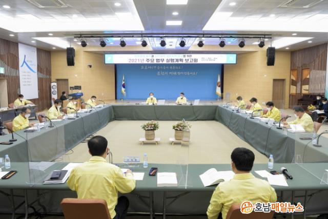À̹ø º¸°íȸ´Â ¹Î¼±7±â 4³âÂ÷ÀÎ 2021³âµµÀÇ ½ÃÁ¤¿î¿µ ¹æÇâ Á¦½ÃÀ» Á¦½ÃÇÏ°í ¼øÃµÇü ´ºµô»ç¾÷, 2023¼øÃµ¸¸±¹Á¦Á¤¿ø¹Ú¶÷ȸ Áغñ »óȲ, ¹Î¼±7±â °ø¾à ÀÌÇà µî ½ÃÁ¤¹ßÀü ·Îµå¸ÊÀ» ±¸Ã¼ÈÇϱâ À§ÇÑ ºÎ¼º° Çù¾÷°ú Åä·Ð Áß½ÉÀ¸·Î ÀÌ·ç¾îÁ³´Ù.
