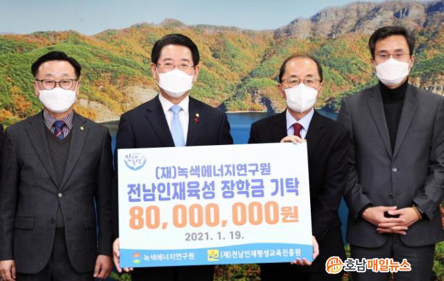 ³ì»ö¿¡³ÊÁö¿¬±¸¿øÀº Áö³ 2018³âºÎÅÍ ¹ßÀü¼Ò ¼öÀͱÝÀÇ ÀϺθ¦ Àü¶ó³²µµ ÀÎÀçÀ°¼º ÀåÇбÝÀ¸·Î Á¦°øÇØ¿ÔÀ¸¸ç, À̹ø ÀåÇбÝÀ» Æ÷ÇÔ ±×µ¿¾È 1¾ï 5õ 500¸¸ ¿øÀ» ±âŹÇß´Ù.