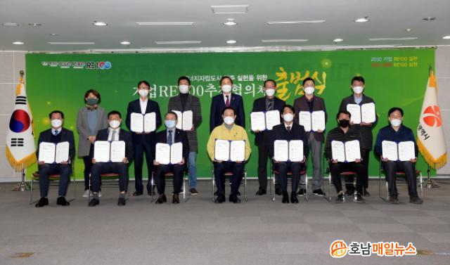 ¡®2030 ±â¾÷RE100 ÃßÁøÇùÀÇü¡¯¿¡´Â ±¤Áֽø¦ Æ÷ÇÔÇØ Çѱ¹¿¡³ÊÁö°ø´Ü, Çѱ¹°¡½º¾ÈÀü°ø»ç, ÇØ¾ç¿¡³ÊÁö, ¼ö¿Ï¿¡³ÊÁö µî 5°³ ¿¡³ÊÁö À¯°ü±â°ü°ú ¸ÅÀÏÀ¯¾÷ ±¤ÁÖ°øÀå, ¿Àºñ¸ÆÁÖ ±¤ÁÖ°øÀå, ÄÚÄ«ÄݶóÀ½·á ±¤ÁÖ°øÀå, ¼¼¹æÀüÁö ±¤ÁÖ°øÀå, ÀϽŹæÁ÷ ±¤ÁÖ°øÀå, ±¤Áֱ۷ιú¸ðÅͽº, NHN ÁÖ½Äȸ»ç, ÀΰøÁö´É»ê¾÷À¶ÇÕ»ç¾÷´Ü µî 8°³ ±â¾÷ÀÌ Âü¿©Çß´Ù.