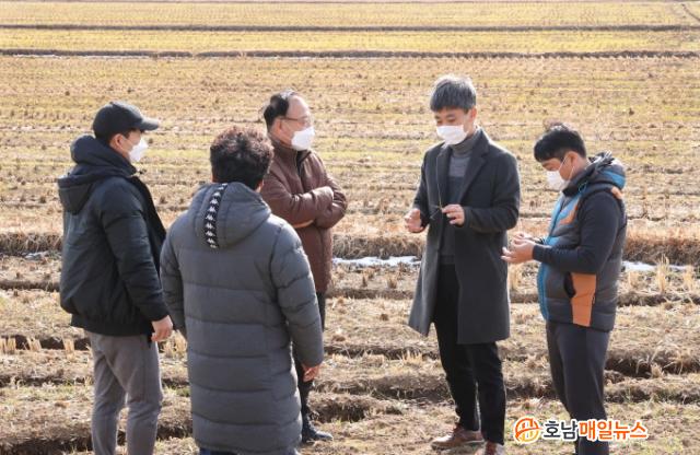 »çÁø¼³¸í : ³ó¾÷±â¼ú¼¾ÅÍ Á÷¿øÀÌ ¿ÃÇØ ÆÄÁ¾µÈ ½Ò±Í¸®¸¦ »ìÆìº¸¸ç Àç¹è ±â¼úÀ» ÁöµµÇϰí ÀÖ´Ù.