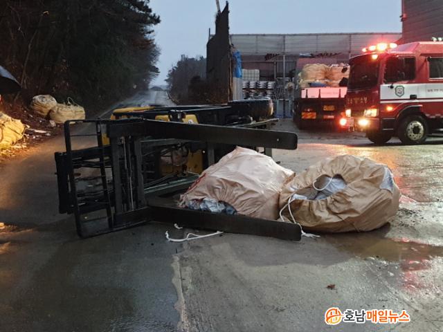119±¸Á¶´ë¿øÀÌ ÇöÀå¿¡ µµÂøÇßÀ» ¶§ ÀÛ¾÷ ÁßÀÌ´ø Áö°ÔÂ÷°¡ µµ·Î»ó¿¡ ³Ñ¾îÁ® ¿ä±¸Á¶ÀÚ 1¸íÀÇ ¹ßÀÌ Áö°ÔÂ÷¿¡ ±ò·Á ³ª¿ÀÁö ¸øÇϰí ÀÖ´Â »óȲÀ¸·Î À¯¾ÐÀåºñ¸¦ ÀÌ¿ëÇÏ¿© ¾ÈÀüÇÏ°Ô ±¸Á¶ ÈÄ Àα٠º´¿øÀ¸·Î À̼ÛÇÏ¿´´Ù°í ¹àÇû´Ù.