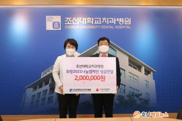 À̹ø ¼º±ÝÀü´ÞÀº ±¤ÁÖ»çȸº¹Áö°øµ¿¸ð±Ýȸ¿¡¼ 1¿ù 31ÀϱîÁö ÁøÇàÇÏ´Â Èñ¸Á2021³ª´®Ä·ÆäÀÎ ¼º±Ý¸ð±Ý Âü¿© ±â°£¿¡ ÀÌ·ç¾îÁ³À¸¸ç, Á¶¼±´ëÇб³Ä¡°úº´¿øÀº µû¶æÇÑ ³ª´®Âü¿©·Î »ç¶ûÀÇ Çູ ¿Âµµ¸¦ ¿Ã¸®´Âµ¥ µ¿ÂüÇß´Ù.
