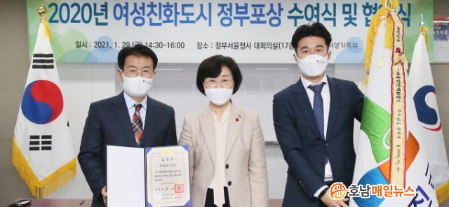 ¶Ç, À̳¯ Çà»ç¿¡¼´Â Á¤ºÎÆ÷»ó ¹× ¿©¼ºÄ£Èµµ½Ã·Î ÁöÁ¤µÈ Àü±¹ 23°³ ÁöÀÚü°¡ Âü¼®ÇÑ °¡¿îµ¥ Á¤¿µ¾Ö ¿©¼º°¡Á·ºÎÀå°ü°ú À̽¿Á °Áø±º¼ö°¡ ¿©¼ºÄ£Èµµ½Ã Á¶¼º Çù¾à½Ä°ú ÇÔ²² ÇöÆÇÀ» Àü´Þ¹Þ¾Ò´Ù.