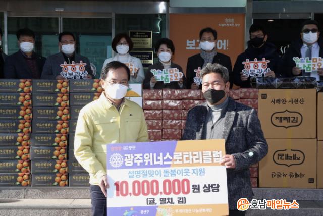 [È£³²¸ÅÀÏ´º½º = ÀÌÁ¾¹é ±âÀÚ] ±¤ÁÖÀ§³Ê½º·ÎŸ¸®Å¬·´(¹Úµ¿½Å ȸÀå)ÀÌ 3ÀÏ ¼Ò¿Ü°èÃþ¿¡°Ô ³ª´²´Þ¶ó¸ç 1,000¸¸¿ø »ó´çÀÇ ±Ö 100¹Ú½º¿Í ¸êÄ¡ 100¹Ú½º, ±è 100ÅêÀ» ±¤»ê±¸¿¡ ¸Ã°å´Ù.