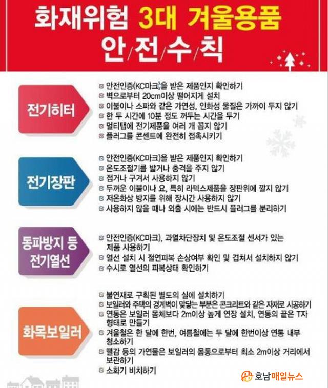³¯¾¾°¡ Ãß¿öÁø¸¸Å °Ü¿ï¿ëǰÀº ¿ì¸® »ýȰ¿¡ Æí¸®ÇÏ°í ¾ø¾î¼´Â ¾ÈµÉ ÇʼöǰÀ¸·Î ÀÚ¸®Àâ¾Ò´Ù. ±×·¯³ª ¾ÈÀÏÇÑ »ý°¢À» °®°ÔµÇ¸é ÀÛÀº ºÎÁÖÀÇ¿¡µµ ´ëÇü »ç°í°¡ ¹ß»ýÇÒ ¼ö ÀÖ´Ù´Â »ç½ÇÀ» Àؾ ¾ÈµÈ´Ù. ÈÀç´Â ¾ðÁ¦ ¾îµð¼³ª ¹ß»ýÇÒ ¼ö ÀÖ´Ù´Â Á¡À» ¸í½ÉÇÏ°í ¾ÈÀü¼öÄ¢À» ÁؼöÇØ ÈÀç ¿¹¹æ¿¡ ÃÖ¼±À» ´ÙÇÏÀÚ.